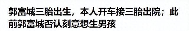 结语 郭富城家添了第三个小公主,这本来是件大喜事,可偏偏有些人,嘴巴就是不饶人,非得找茬说人家没生儿子。 日子是人家自己过的,幸福不幸福只有他们自己清楚,孩子健健康康,一家人开开心心,比什么都强。 现在社会发展这么快,好多女孩子比男孩子还优秀,怎么就非要生个男孩才算是完整吗?劝这些人省省吧,有那个时间还不如关心关心自己。